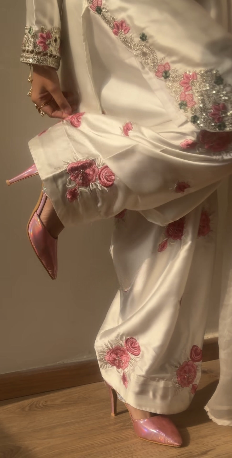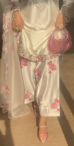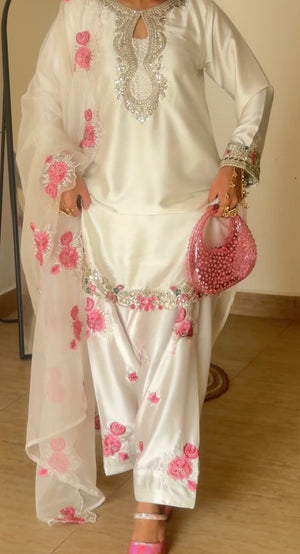 IVORY ROSE LUXE EMBROIDERED SILK SUIT SET