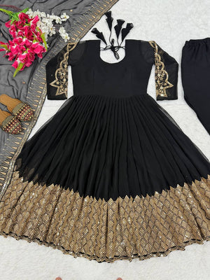 • Anarkali Fabric : Blooming Georgette with 5mm Sequins & Embroidery Work (Full Sleeves)